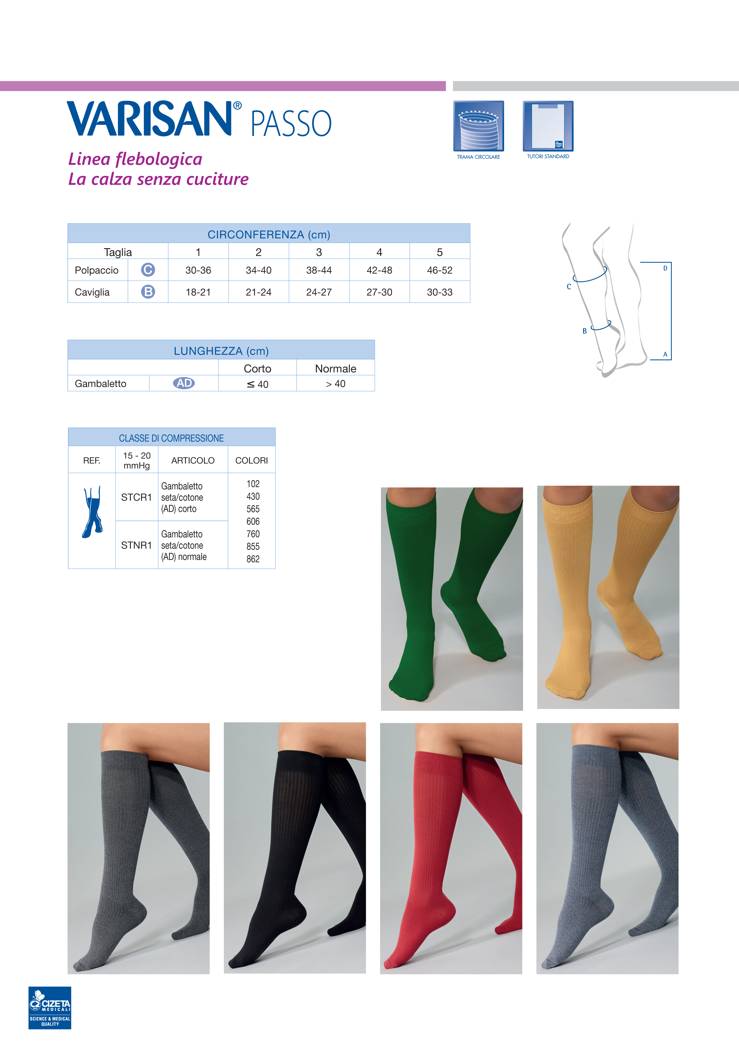 Gambaletto preventivo, 15-20 mmHg, che risponde alle esigenze di stile e di comfort dell’uomo e della donna moderni. Con una gamma di colori che segue le tendenze della moda, è ideale per chi ricerca un prodotto preventivo che possa abbinarsi all’abbigliamento di tutti i giorni, elegante o sportivo.