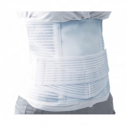 Corsetto in tessuto elasticizzato millerighe aerato, dotato di quattro stecche in metallo per il sostegno lombare adattabili alla morfologia del paziente. Grazie alla tipologia del tessuto autogrippante e' possibile regolare la pressione della chiusura garantendo una maggiore stabilita'.