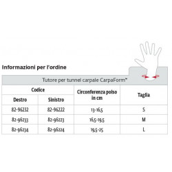 • Design del tutore ideato per permettere decompressione del tunnel carpale