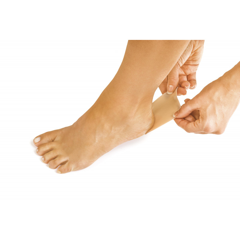 Dispositivo in oleo-gel autoaderente, rivestito sul lato esterno da uno strato di tessuto elasticizzato sottile e morbido. Protegge da pressione localizzata e attrito le zone di cute più esposte. Previene gli arrossamenti e le vesciche. Ritagliabile della forma desiderata.Dimensioni compressa 8x7 cm.
