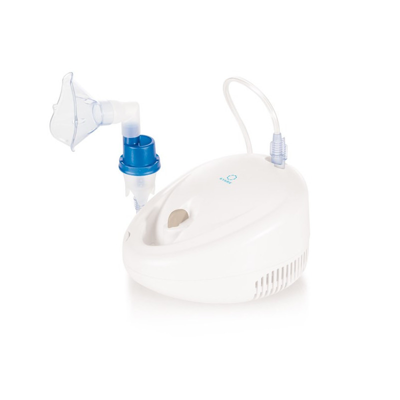 Apparecchio per aerosolterapia, compressore a pistone con motore ad induzione. Alte prestazioni di nebulizzazione grazie all'ampolla Nebjet con doppio effetto venturi, filtro aria, dimensioni contenute, completo di borsa in poliestere per trasporto.