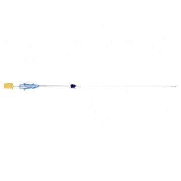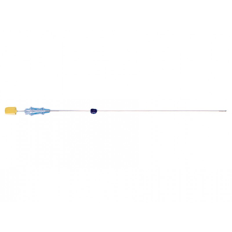 La cannula è provvista di un fermo scorrevole per determinare la profondità di inserimento dell’ago e di un raccordo luer-lock femmina per la raccolta del liquido amniotico con la siringa.