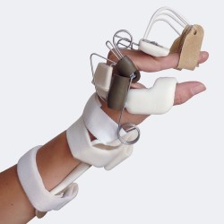 Tutore utilizzato in caso di paralisi dei nervi o nella fase post-operatoria dopo la riparazione delle lesioni ai tendini del pollice. Mantiene il polso in estensione e il pollice in abduzione facilitando il completo recupero delle funzioni della mano.