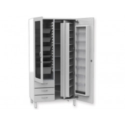 Pratica borsa per trasportare facilmente strumenti medicali e medicinali: 8 scomparti interni mobili, 3 tasche esterne, 8 elastici trattieni-strumenti, una tasca interna con cerniera, 1 borsello rimovibile (17 x 3 x h 24 cm).