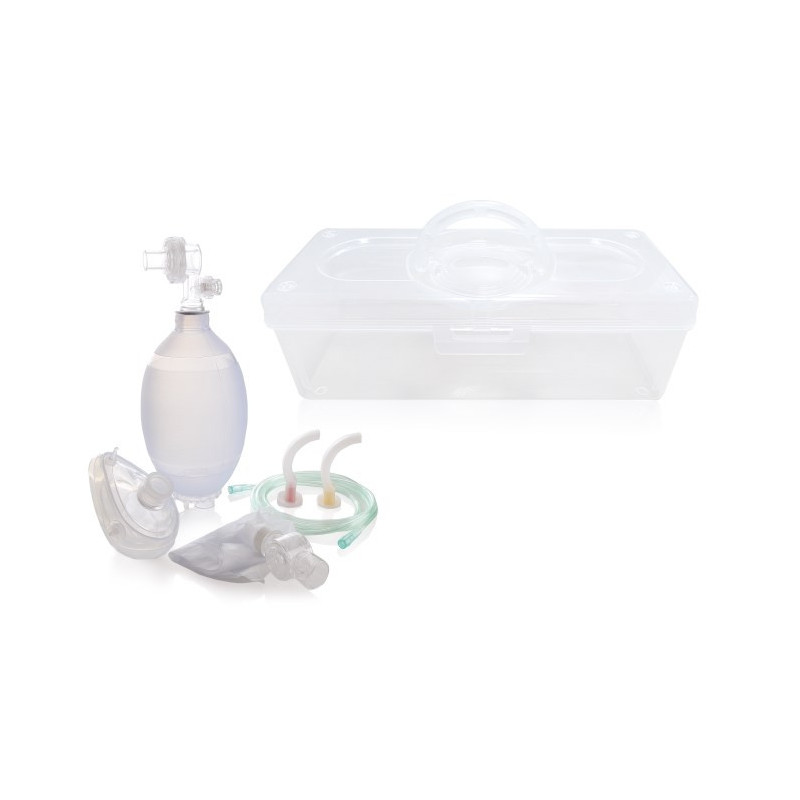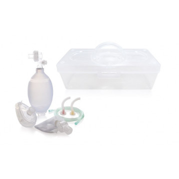 Pallone di ventilazione in gomma neonatale non autoclavabile Capacità 240 ml Valvola paziente con connessione girevole a 360° Valvola di sicurezza regolabile per la sovrappressione Disinfettabile in soluzione battericida Certificato CE in classe IIa