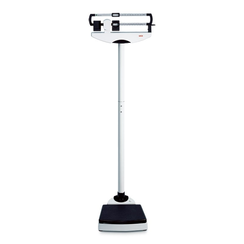 Bilancia meccanica a colonna alta, con scala a cursore. Precisa e robusta la bilancia seca 711 offre grandi vantaggi, come una portata fino a 220 kg ed una precisione a 100 g, che consentono pesate di pazienti in sovrappeso. La struttura di alta qualita' della bilancia, la base di ghisa e la colonna di acciaio, garantiscono una posizione stabile e una lunga durata. Grazie alla sua piattaforma bassa, alla colonna alta e alla scala dei valori a livello degli occhi, la rilevazione del peso e semplice e sicura. Dotata di tappetino in gomma rigida antiscivolo che garantisce al paziente un punto sicuro di appoggio. La scala graduata e' serigrafata su entrambi i lati, in modo che sia il paziente che il medico, possano leggere i valori del peso. L'altimetro optional, seca 220, con misurazioni da 60 a 200 cm, applicabile alla colonna della bilancia, permette di misurare e pesare contemporaneamente. E' dotata di rotelle integrate per poterla facilmente spostare. Funzione regolazione dello zero.
