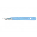 Bisturi con manico in plastica e lama in acciaio inox, confezionati singolarmente in una busta sterilizzata in scatola da 10 pezzi.