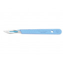 Bisturi con manico in plastica e lama in acciaio inox, confezionati singolarmente in una busta sterilizzata in scatola da 10 pezzi.