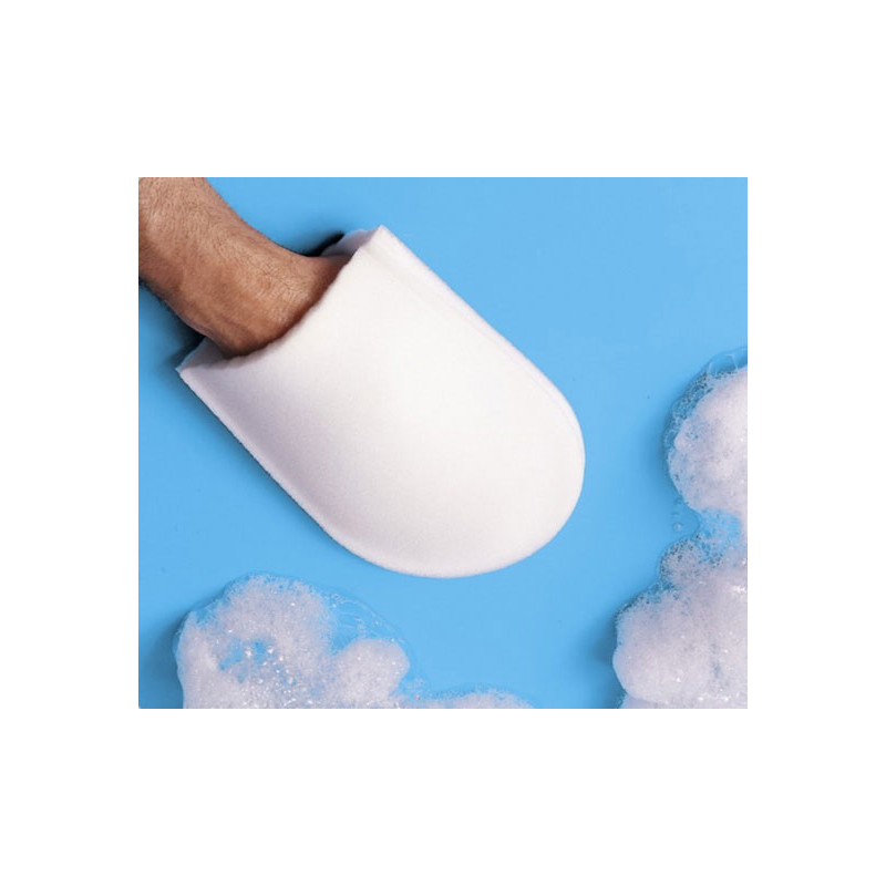 Manopola monouso per il lavaggio del paziente. Prodotta in TNT e spugna, intrisa con