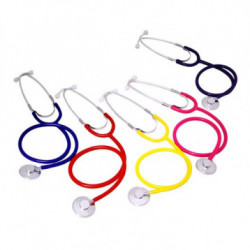 STETOSCOPI TRAD COLOR - LATEX FREE Stetoscopi colorati in alluminio, leggeri e affidabili. Padiglione Ø 43.5 mm, campana Ø 30 mm (dimensioni esterne). Archetto in ottone. Lira: lunghezza 62 cm, int.