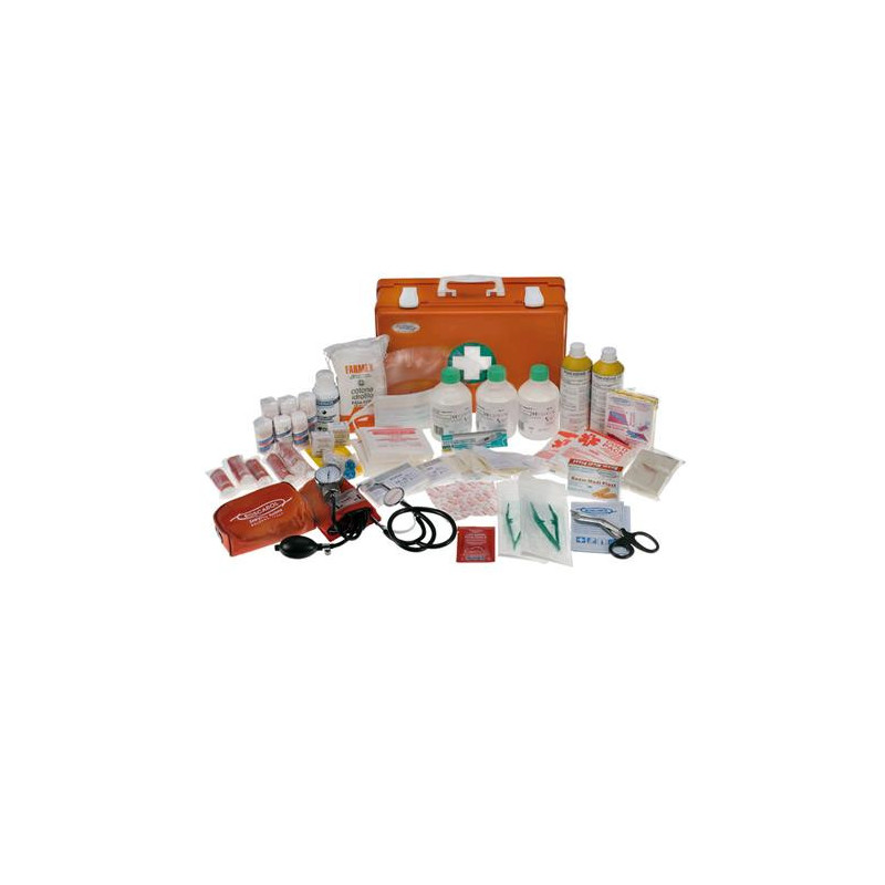 Valigia di pronto soccorso per aziende gruppo B (non classificate ad elevato rischio), allegato 1, quindi con 3 o più dipendenti.