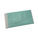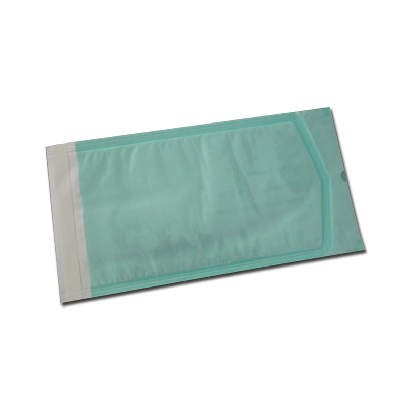 Buste piatte auto saldanti costituite da una pellicola trasparente di poliestere-polietilene verde accoppiato a carta medicale che permette la penetrazione del vapore e del gas durante la sterilizzazione. Gli indicatori di vapore e gas cambiano colore quando esposti alla sterilizzazione. 1. Gli angoli rinforzati impediscono alla polvere di accumularsi vicino all’apertura, riducendo il rischio di contaminazione del contenuto all’atto dell’apertura. 2. La pellicola trasparente è conforme allo standard tedesco EN 10/204. La carta medicale è conforme ai seguenti standard: DIN 58953 (Tedesco), Pharmacopea 589 (Francese), pr EN 868-3 (Europeo) e BS 6256 (Inglese). 3. Gli chevron consentono una rapida e corretta apertura delle buste, le quali sono inoltre contrassegnate con il corretto senso di apertura. 4. Le buste sono costituite da uno strato di pellicola trasparente laminata (un tipo speciale di poliestere e polipropilene copolimero) e carta bianca medicale Kraft resistente all’umidità, appositamente progettati per garantire un’elevata protezione antibatterica. 5. La saldatura “Multiline” è resistente e duratura; le linee di saldatura sono equamente spaziate e quella esterna corre lungo l’intera lunghezza della busta in modo da assicurare la massima tenuta. Tutti i rotoli e le buste sono certificati e sono costruiti secondo gli standard internazionali DIN 58953 BS 6871, EN 868-5, CN 13485