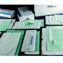Buste piatte costituite da una pellicola trasparente di poliestere-polietilene verde accoppiato a carta medicale che permette la penetrazione del vapore e del gas durante la sterilizzazione, non autosaldanti. Gli indicatori di vapore e gas cambiano colore quando esposti alla sterilizzazione. 1. Gli angoli rinforzati impediscono alla polvere di accumularsi vicino all’apertura, riducendo il rischio di contaminazione del contenuto all’atto dell’apertura. 2. La pellicola trasparente è conforme allo standard tedesco EN 10/204. La carta medicale è conforme ai seguenti standard: DIN 58953 (Tedesco), Pharmacopea 589 (Francese), pr EN 868-3 (Europeo) e BS 6256 (Inglese). 3. Gli chevron consentono una rapida e corretta apertura delle buste, le quali sono inoltre contrassegnate con il corretto senso di apertura. 4. Le buste sono costituite da uno strato di pellicola trasparente laminata (un tipo speciale di poliestere e polipropilene copolimero) e carta bianca medicale Kraft resistente all’umidità, appositamente progettati per garantire un’elevata protezione antibatterica. 5. La saldatura “Multiline” è resistente e duratura; le linee di saldatura sono equamente spaziate e quella esterna corre lungo l’intera lunghezza della busta in modo da assicurare la massima tenuta. Tutti i rotoli e le buste sono certificati e sono costruiti secondo gli standard internazionali DIN 58953 BS 6871, EN 868-5, CN 13485