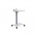 Carrelli con base, ripiano, e maniglia in acciaio verniciati a polveri di colore bianco. Colonna in alluminio bianca (RAL9010) o grigia (RAL7046), personalizzabile con 1 kit di 8 strisce colorate in dotazione. Ruote anteriori di Ø 75 mm, ruote posteriori di Ø 75 mm con freno. Maniglia e ripiano posizionabili ad ogni altezza, così come gli accessori optional (vedi sezione accessori).