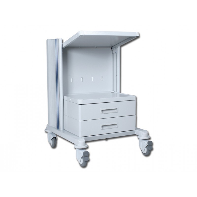Carrello progettato per tenere e spostare elettrobisturi (inclusi modelli Argon). Nella progettazione dei carrelli è stata presa particolarmente in considerazione l’ergonomia, per esempio l'altezza di 900 mm con ripiano superiore inclinato permette una facile lettura del display dell'unità. Il carrello è dotato di un secondo ripiano con bordi rialzati, due cassetti posti alla base e uno spazio posteriore con cinghie di fissaggio per contenere due bombole di Argon. Tutte le parti del carrello sono realizzate in resina verniciata con polveri epossidiche, acciaio temperato ed alluminio. Disponibile versione con multi presa a 4 spine, scatola fusibili, presa a terra indipendente, cavo di alimentazione di 3 m.