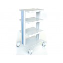 Piantana per ipodermoclisi in acciaio INOX. Base in plastica a 5 razze su ruote. 2 ganci. Regolabile in altezza: 117÷203 cm