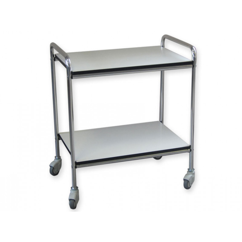 Questo carrellino ambulatoriale si caratterizza per ridotte dimensioni che permettono di farlo accedere in tutti gli spazi, anche quelli più ristretti. La struttura in alluminio presenta due ripiani sovrapposti e poggia su 4 rotelle che garantiscono al carrello movimenti regolari e fluidi.