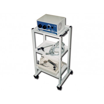 Carrellino da ospedale in alluminio con base di appoggio a 4 rotelle, facile da spostare con i suoi 15 kg di peso, dimensioni 70x50 cm e altezza 78 cm.