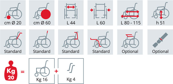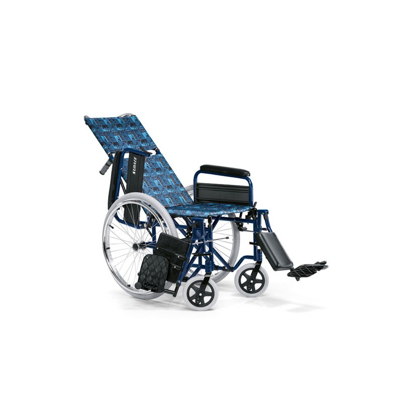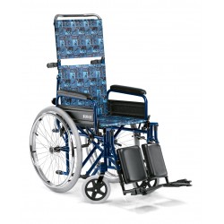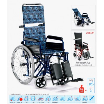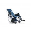 Carrozzina articolata leggera per disabili e anziani ad autospinta con comodissimo schienale reclinabile e allungabile. Tela schienale con predisposizione per cinture di sicurezza.