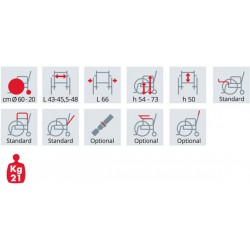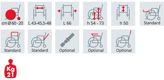 Questa carrozzina W.C. ha un pratico schienale regolabile e ribaltabile sulla seduta, dotato di maniglia da spinta fissata sulla sommità che permette di indirizzare la sedia al meglio.