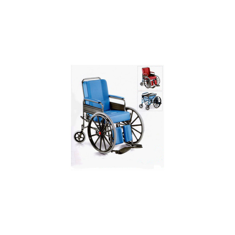 Carrozzina WC imbottita, confortevole e stabile.