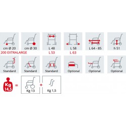 Leggerezza, resistenza e comodità. Sono queste le principali caratteristiche della sedia a rotelle SURACE 200 LARGE, una carrozzina da transito adatta al trasporto di pazienti con difficoltà motorie e di deambulazione per brevi tragitti. La struttura in acciaio cromato a doppia crociera garantisce robustezza e spostamenti sicuri, i braccioli ribaltabili e le pedane girevoli ed estraibili permettono di adattare la carrozzina alle esigenze dell'utente. Il telaio pieghevole consente di richiudere senza sforzi la sedia a rotelle e facilita il trasporto della stessa.