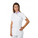 Camice sanitario da donna adatto a tutte le professioni sanitarie e di laboratorio, in 100% cotone di alta qualità e dotato di comode tasche, disponibile in diverse misure dalla 42 alla 54.