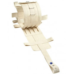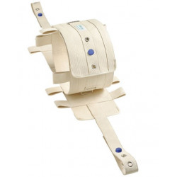 Cintura composta da un bustino rigido con pancerina interna antisfregamento, regolabile con occhielli e due tiranti di sicurezza, il tutto da fissare al letto con due cinghie regolabili con occhielli.