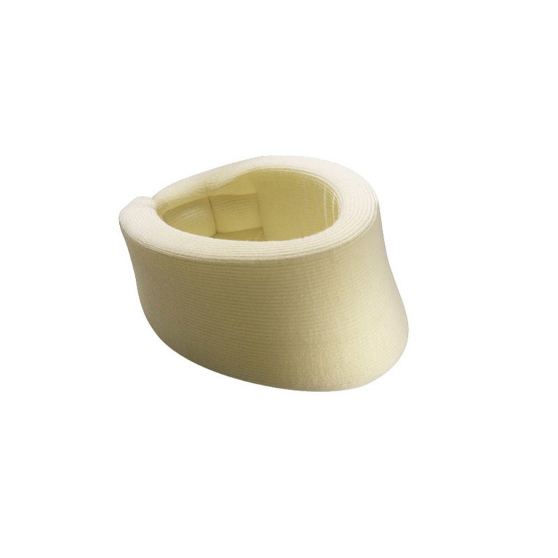 Artrosi cervicali. Schiuma elastica rivestita in maglia tubolare. Chiusura con adesivo in velcro.