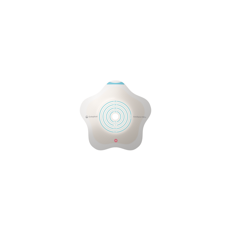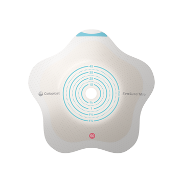 SenSura® Mio Convex Flip è un nuovo prodotto appositamente progettato per persone con un’area sporgente. La placca adesiva curva a forma di stella aderisce saldamente a rigonfiamenti, ernie e sporgenze. I petali della forma a stella avvolgono il corpo senza creare grinze o pieghe. L’adesivo elastico e le aree curve fanno sì che il prodotto segua i movimenti del corpo, e l’anello di stabilità all’interno della sacca assicura la giusta stabilità attorno alla stomia.