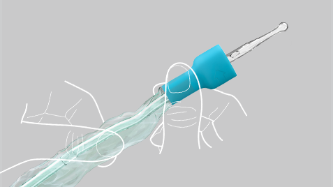 Il morbido grip e la guida protettiva asciutta facilitano l’inserimento senza dover toccare il catetere.