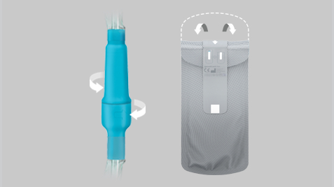 Dopo l’utilizzo, il grip e l’estremità preposta al drenaggio possono essere richiuse. Il catetere può quindi essere reinserito nella confezione richiudibile per uno smaltimento ordinato e igienico.