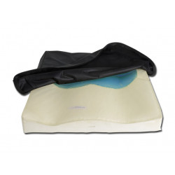 Il cuscino gel air 2D è fabbricato con una base in schiuma modellata viscoelastica (Visco Mouss) e un gel di poliuretano. Il gel fluido viscoelastico (blu) garantisce la massima riduzione della pressione sulle zone vulnerabili mentre il gel normale e la schiuma aumentano la superficie di contatto e ne attutiscono la pressione. La forma del cuscino garantisce una buona posizione durante da seduti e impedisce di scivolare in avanti.