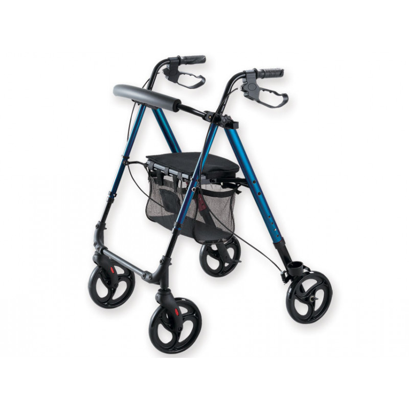 Telaio in alluminio leggero blu con comodo sedile in PP.