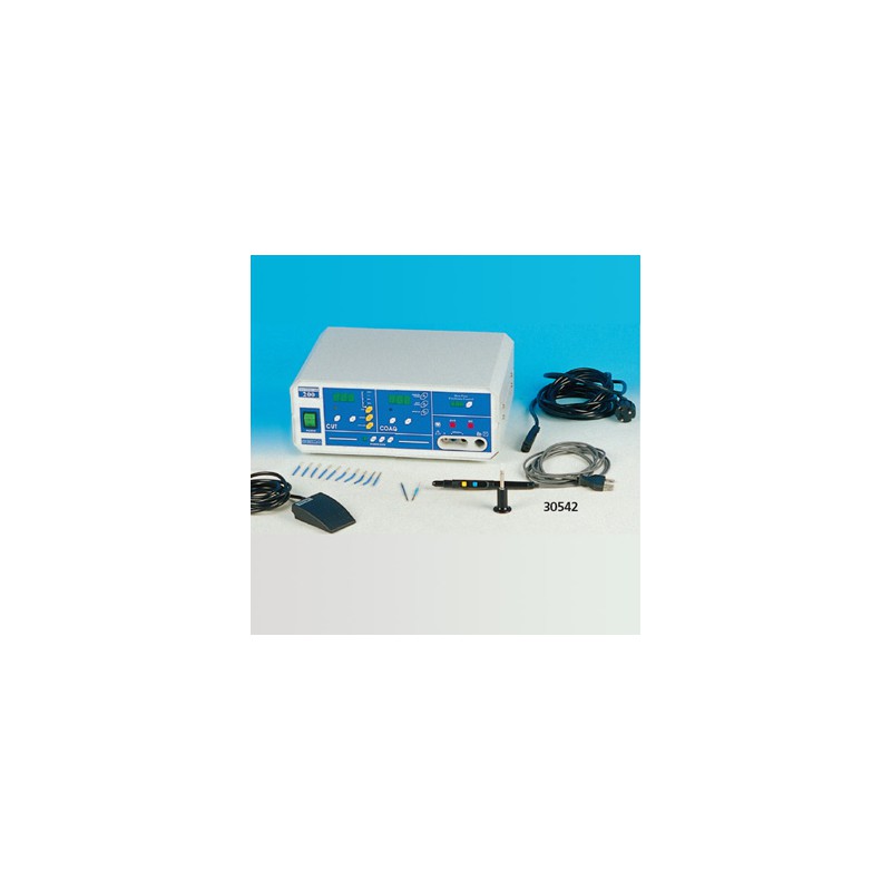 Gli apparecchi elettrochirurgici ad alta frequenza MB 200 e MB 202 permettono di effettuare media elettrochirurgia monopolare o bipolare.L’apparecchiatura può essere utilizzata, sia con tempo d’erogazione pari a quello d’attuazione del circuito d’uscita, che con tempo d’emissione programmabile da 1 a 999 millesimi di secondo. L’impulso di corrente programmato può essere singolo o ripetuto da 1 a 500 volte il secondo. La programmazione dei tempi di emissione e pausa ne permette l’utilizzazione per prelievi bioptici, con ridotta modificazione del campione prelevato e ridotto danno termico al tessuto oggetto del prelievo. MB 202 consente di terminare automaticamente la coagulazione con pinza monopolare o bipolare. Un particolare circuito di sorveglianza del contatto placca-paziente denominato Skin Plate Electronic Control salvaguarda il paziente dal pericolo di ustione, dovuta al casuale distacco della placca di riferimento. Le forme d’onda disponibili ed i valori delle tensioni di picco utilizzate, nonché il controllo accurato delle correnti di dispersione ad alta frequenza rendono l’apparecchiatura particolarmente adatta all’uso in chirurgia endoscopica, per procedure quali polipectomia, resezione prostatica (TURP), papillectomia, resezione uterina, ablazione endometriale, etc. La coagulazione può essere eseguita con corrente ad alto fattore di cresta, per ottenere un elevato effetto termico, o con corrente con basso fattore di cresta, per ottenere coagulazione in assenza di carbonizzazione.