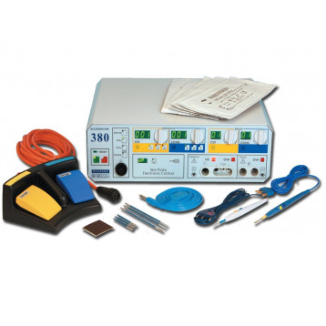 DIATERMO MB 380 HOSPITAL è un bisturi elettrico a radiofrequenza capace di offrire la massima precisione e affidabilità negli interventi di chirurgia monopolare e bipolare. Garzie alle numerose funzioni, è in grado di effettuare operazioni di taglio puro, taglio coagulato e coagulazione.