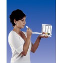 Sistema innovativo per incentivare la respirazione mediante l'inspirazione. E' composto da una base e da un corpo a tre camere con all'in-terno tre sfere di colore e peso diversi. Mediante l'inspirazione le tre sfere si sollevano di un livello proporzionale alla forza dell'inspirazione realizzata. La possibilità di vedere il movimento delle tre sfere permette di quantificare lo sforzo esercitato e di constatare la reale efficacia dell'esercizio indicato dal medico curante. Smontabile per una più facile pulizia. Le tre fasi per l'utilizzazione: 1) Inspirare a fondo usando l'apposito boccaglio fino a sollevare più sfere possibili. 2) Mantenere l'inspirazione il maggior tempo possibile. 3) Espirare rilasciando il beccuccio. Ripetere il procedimento.