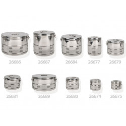 Contenitori cilindrici adatti a sterilizzare medicazioni (garze, bende di cotone, ecc.) in sterilizzatore a vapore (autoclave) o a secco.