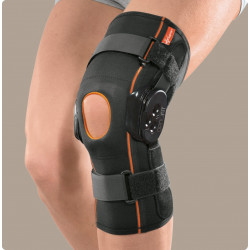 Immobilizzatore del ginocchio in flessione a 20° dotato di due stecche metalliche posteriori e due stecche metalliche laterali che garantiscono una rigorosa immobilizzazione dell'arto. La struttura a tre pannelli con cinghie a velcro permette una migliore adattabilità alla circonferenza. Colore blu.