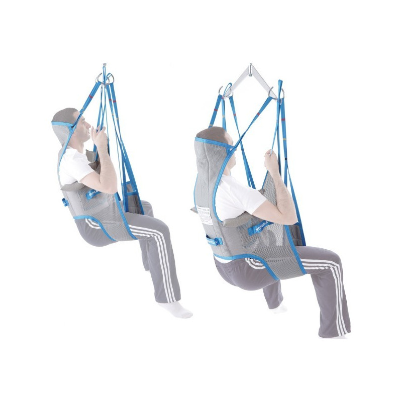 L?imbracatura IM141 con supporto per la testa viene utilizzata per il sollevamento, trasferimento e operazioni igieniche per la toilette. E' realizzata con tessuto a rete denominato Strongtex, 100% poliestere, affidabile in ogni situazione anche a contatto con l?acqua, antistrappo e altamente traspirante. Una robusta cinghia spinata (100% poliestere), orla l?imbracatura e forma, ad ogni estremità, un occhiello con diversi punti di aggancio per assicurare la simmetria durante il sollevamento. La cinghia è continua e cucita su tutto il perimetro dell?imbracatura al fine di garantire maggiore tenacità. Le cuciture vengono realizzate utilizzando un filo in poliestere ad alta resistenza. Una morbida imbottitura fornisce un gradevole supporto sotto le braccia. Portata max. Kg. 250.
