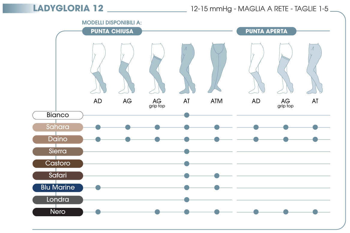 12-15 mmHg: Ai primi sintomi di affaticamento e senso di pesantezza alle gambe, attenuazione dei disturbi circolatori dovuti alla gravidanza.
