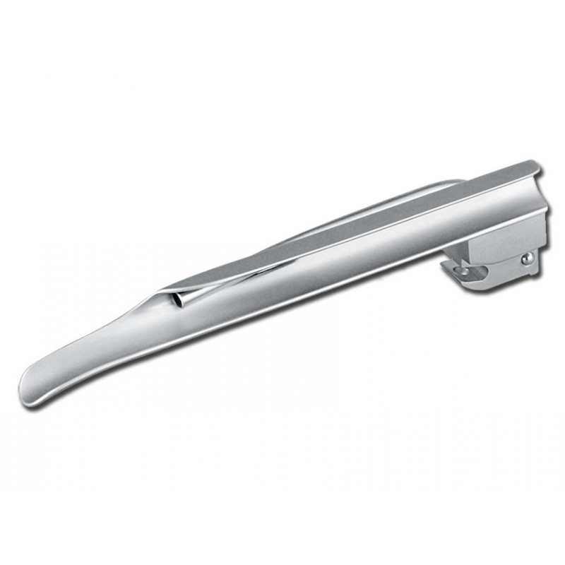 La linea "Green GIMA" comprende una serie di lame a fibre ottiche e manici che sono completamente compatibili con tutti i sistemi a fibre ottiche più diffusi sul mercato: Heine, Welch, Allyn, Riester, Medicon e tutti quelli che si adeguano agli standard ISO 7376/3. Prive di lattice. Le lame di queste case si adattano ai manici della linea "Green GIMA" e viceversa. La luce alogena Green GIMA viene trasmessa dal manico alla punta della lama tramite un fascio di fibre ottiche che produce una luce fredda e brillante. Il fascio di F.O. può essere smontato per una sterilizzazione indipendente. Lama a fibre ottiche Miller N° 3 -Adulto