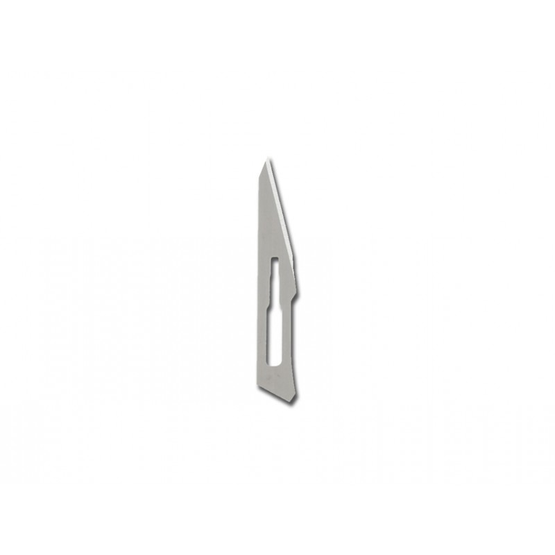 Lame fabbricate in acciaio inox inglese di alta qualità, assicurano un'ottima affilatura ed un perfetto controllo durante il taglio. Confezione in singole bustine di foglie di metallo ed in scatola di cartone da 100 pz. Sterilizzate a raggi gamma.