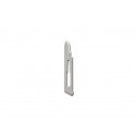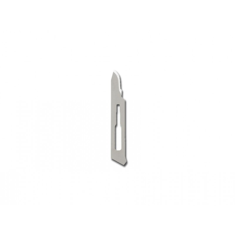 Lame fabbricate in acciaio inox inglese di alta qualità, assicurano un'ottima affilatura ed un perfetto controllo durante il taglio. Confezione in singole bustine di foglie di metallo ed in scatola di cartone da 100 pz. Sterilizzate a raggi gamma.