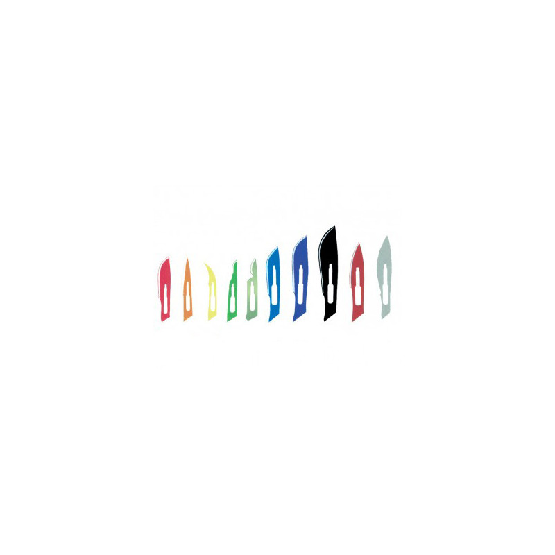 La dimensione della lama è chiaramente identificata sul retro del foglio e da un adesivo colorato e codificato sulle scatole.