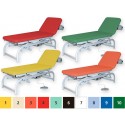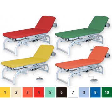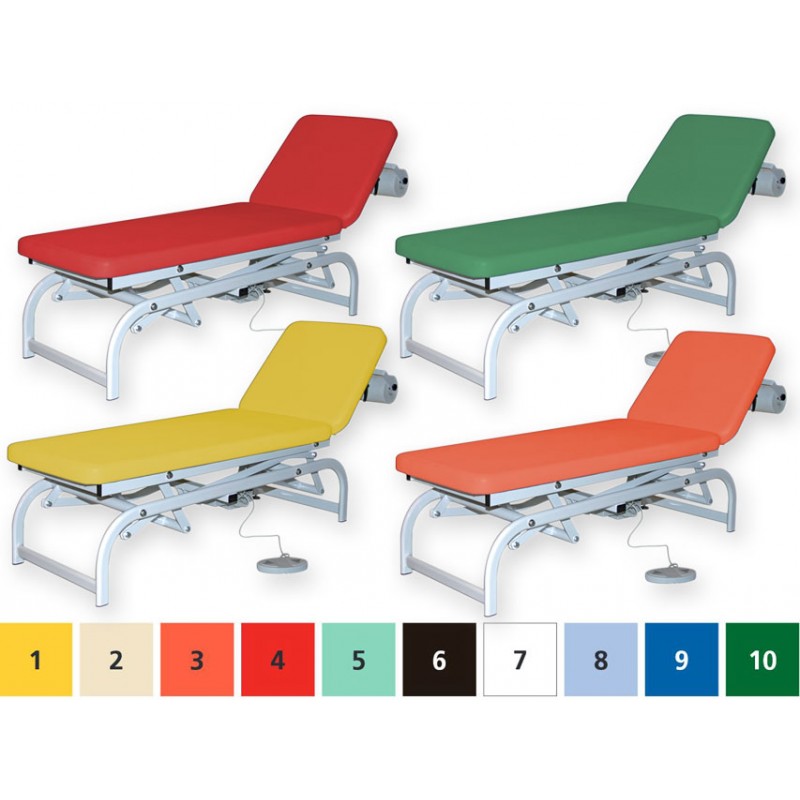 Lettino regolabile in altezza (48-95 cm) tramite accumulatore elettronico (Linak 6.000 N) controllato da pedale, con testata facilmente inclinabile (da +60° a - 10°) mediante una pompa a gas.