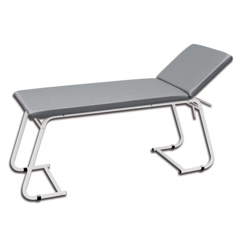 Questo lettino da visita medica ha 2 sezioni di cui una fissa e una inclinabile corrispondente all'area in cui il paziente poggia la schiena.