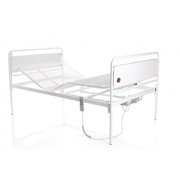 Struttura molto robusta in tubolare cilindrico di acciaio ø 30 mm, verniciato a polveri con fondo a rete di acciaio elettrosaldata, adatta ad alloggiare qualsiasi tipo di materasso. Testata e pediera in acciaio verniciato a polveri di facile assemblaggio grazie agli attacchi a baionetta. Pannelli molto robusti in MDF nobilitato da 11 mm facilmente smontabili per pulizia e sanificazione. Alzatesta e alzagambe elettrici tramite attuatori comandati da un semplice telecomando azionabile dal paziente e dall'operatore. Il letto è conforme alla norma UNI CEI EN 60601-2-52 dei letti medici.