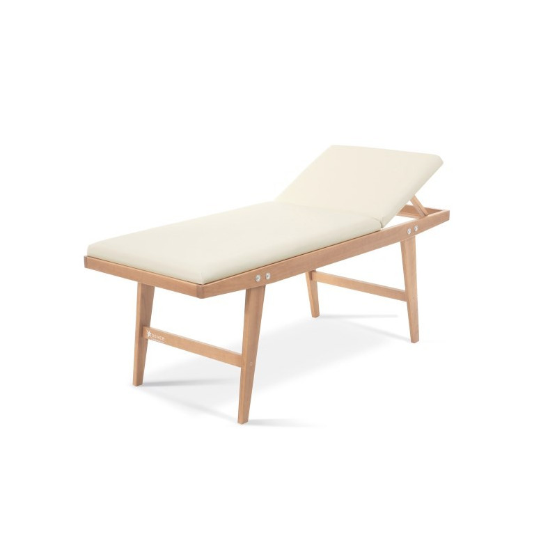 Lettino con telaio in legno indicato per visite cardiologiche e adattabile con grande successo come lettino da trattamenti presso centri benessere e centri estetici.