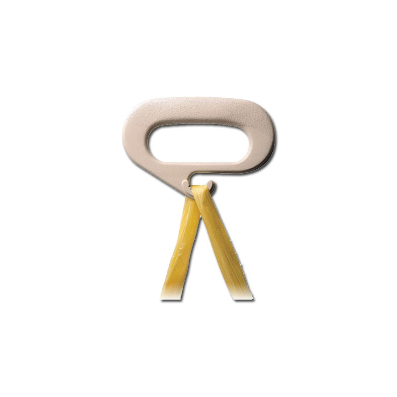 Questo ausilio per anziani si presenta come una comoda impugnatura con un gancio al quale appendere la busta della spesa in modo da poterla trasportare sorreggendola dal dispositivo, riducendo così il dolore alle mani e la fatica.